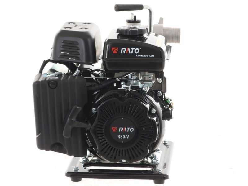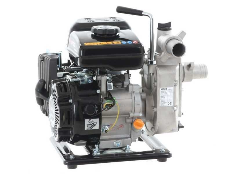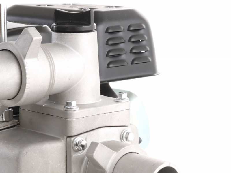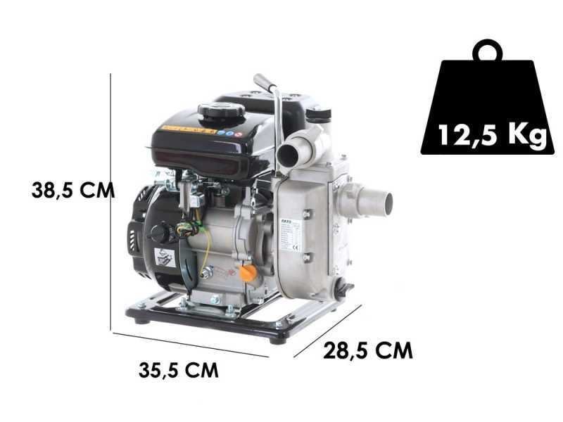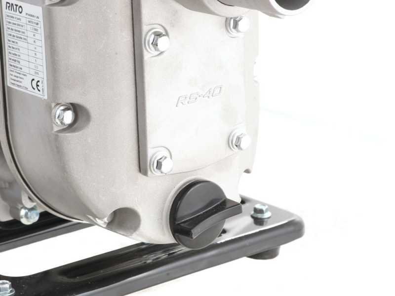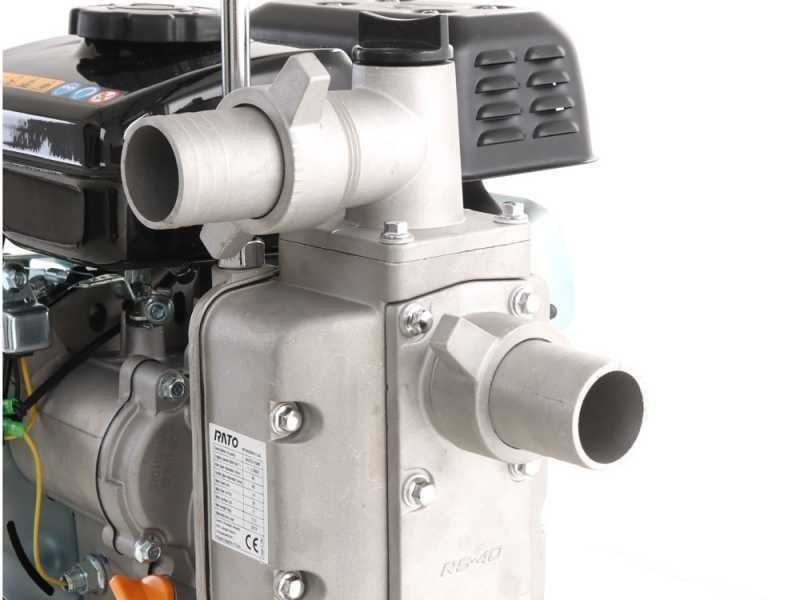 La bomba de agua a gasolina Rato RT40ZB20-1.1Q es ideal para bombear agua de cualquier tipo de fuente para riego, vaciado de piscinas, estanques y fuentes pequeñas y medianas. Es una herramienta realmente práctica y de gran eficiencia para el trabajo agrícola. Resulta muy útil cuando se necesita distribuir agua donde no hay electricidad, por ejemplo, en terrenos agrícolas, donde es necesario extraer agua de un pozo, estanque, cisterna o tanque de difícil acceso. Su relación peso-rendimiento es sorprendente: con tan solo 12,5 kg, garantiza un caudal máximo de al menos 233 litros por minuto y una altura de succión de 6 metros. La ventaja de este modelo es su practicidad; gracias a su ligereza, es fácilmente transportable. La bomba es autocebante y, por lo tanto, puede ponerse en funcionamiento simplemente llenando de agua el tapón correspondiente en el cuerpo de la bomba. PRECAUCIÓN: El motor se suministra sin aceite; recuerde rellenarlo antes de cada uso. No utilice la máquina si la bomba está seca. Estas bombas térmicas están diseñadas para transferir agua (por ejemplo, de un depósito a otro) o para el riego por surcos en campos y huertos. No garantizamos su compatibilidad con aspersores de diversos tipos ni con sistemas de riego de cualquier tipo (que requieren la planificación de un técnico con cálculos de caudal, elevación, caudal, presión, diámetro de tubería, válvulas, boquillas, etc.) y que podrían requerir bombas más específicas para su instalación.