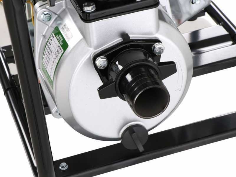 La Greenbay GB-WP 50 es una bomba de riego ideal para bombear agua desde cualquier fuente, ya sea con manguera o aspersor. Resulta esencial cuando se necesita distribuir agua en zonas rurales o sin electricidad, extraerla de pozos, estanques o cisternas de difícil acceso, o vaciar un sótano o garaje inundado. La ventaja de este modelo reside en su practicidad; gracias a su ligereza, es fácil de transportar. La bomba es autocebante y se puede arrancar simplemente llenándola de agua a través del tapón correspondiente en el cuerpo de la bomba. PRECAUCIÓN: El motor no utiliza aceite; recuerde llenarlo con el aceite incluido antes de usarlo. No utilice la máquina con la bomba seca. Estas bombas son aptas para el trasvase de agua (por ejemplo, de una cisterna a otra) o para el riego por surcos en campos o huertos. No garantizamos la compatibilidad para su uso con aspersores de los más variados tipos ni con sistemas de riego reales de todo tipo (que requieren el trabajo de un técnico con cálculos relativos a caudal, cota, caudal, presión, diámetro de tuberías, válvulas, boquillas, etc.) y que pueden requerir tipos de bombas más específicos para su instalación.